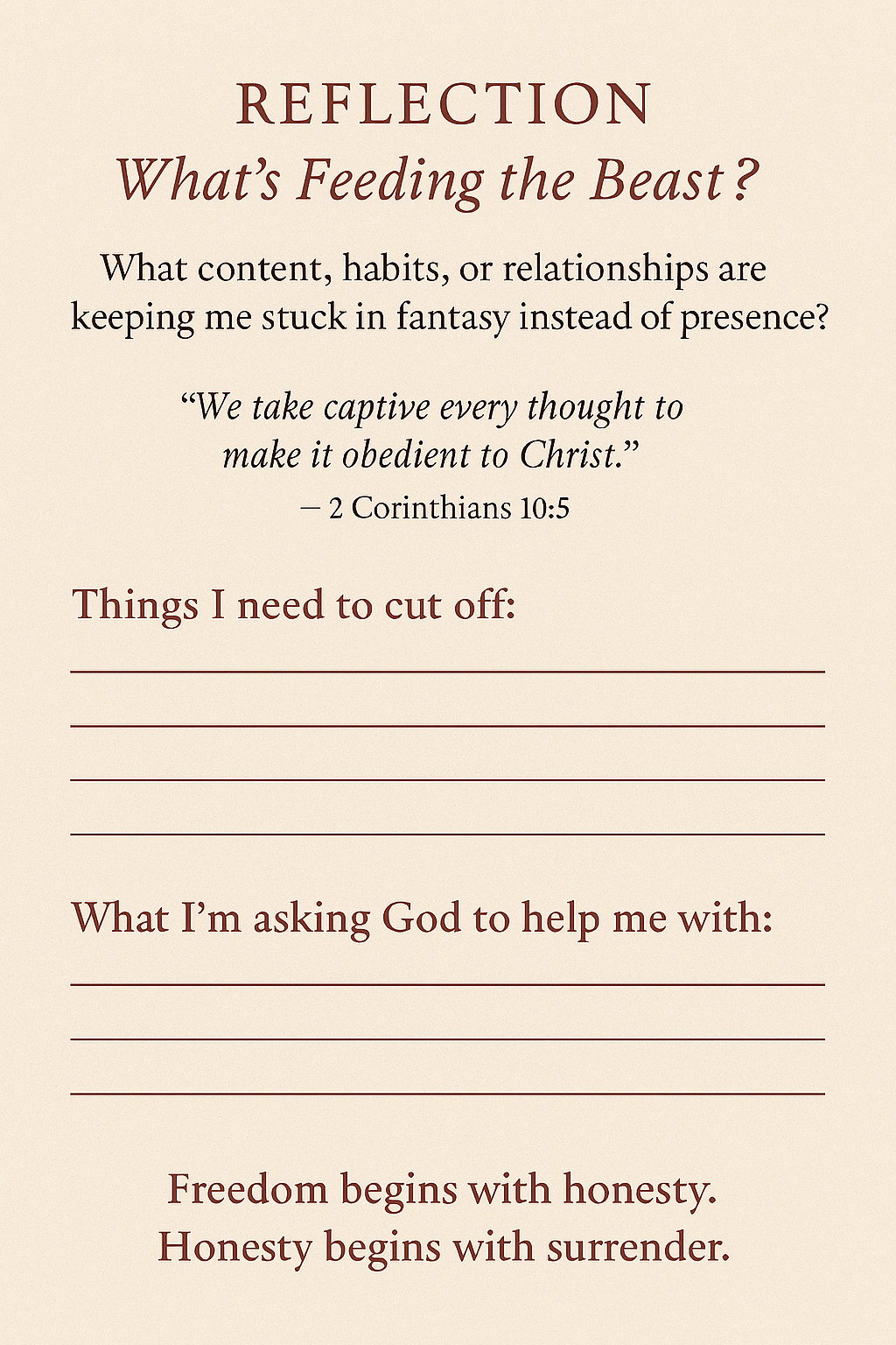 This reflective tool helps you pause and notice the patterns, habits, or thoughts that quietly shape your days. Use it as a journaling prompt or prayer guide to name what’s fueling your inner life—and to invite God into the places that need His peace.